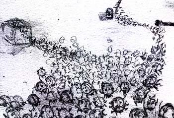 Muchas veces luego de trabajar varios días, descubro que un dibujo que descansaba al margen es lo que más quiero. Y entonces dejo a un lado lo que venía haciendo, y recomienzo. Rehúyo mucho a tener un estilo en mi dibujo. O sea, quiero que la imagen que antecede no sea el modelo para la nueva imagen.