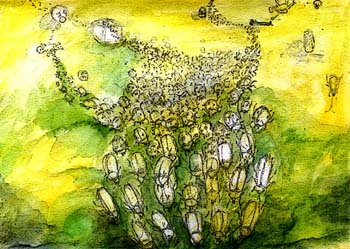 Hay una especie de "esterilidad" que me asusta mucho en el resultado de muchos trabajos realizados para ilustrar libros. Es que creo que la profesionalización puede llevar riesgos, pero a su vez es inherente de cualquier labor humana que se hace en forma constante y prolija. Hay dogmas que nos impiden llegar en forma auténtica y personal a la médula de las cosas. En ese sentido, observo mucho a los chicos cuando dibujan. En ellos el dibujo actúa como una necesidad intensa. No los invaden los problemas estéticos. Bien o mal, lindo o feo, eso es lo que es y es bueno si sirve para comprender el entorno que se tiene que atravesar. Por eso, los dibujos de los chicos están vivos.