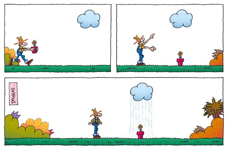 Cuando el Jardinero Mágico no tiene su regadera a mano,