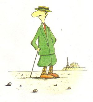 Según señala Eduardo Stilman (1), el humor absurdo emplea dos métodos principales: uno, utilizado por Carroll en sus Alicias, pero también por Franz Kafka en gran parte de su obra, "consiste en la representación metafórica del caos, en la postulación de un universo regido por el desorden". El otro, frecuentemente identificado con la poesía, "se limita a la enunciación desapasionada del disparate", y ha dado lugar a la literatura del nonsense. Esta última variante, quizás más amable que la primera, es la que parece guiar al indomable hombrecillo del checo Hans Traxler (1929) a través de sus aventuras en este pequeño libro.